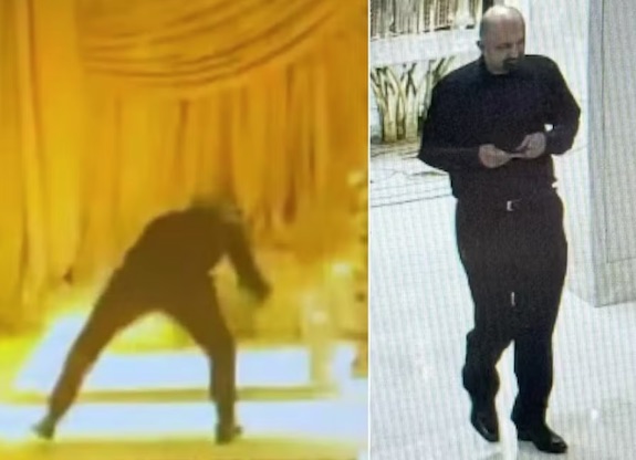 Armean Shirehjini, identificado como o “penetra”, foi flagrado por câmeras de segurança do local. Ele levantou suspeitas por estar andando para todos os cantos com o celular no ouvido. O suspeito até pediu uma bebida antes de passar pelas mesas vazias, enquanto os convidados estavam distraídos na pista de dança, e logo após pegou uma caixa e saiu correndo. No objeto roubado havia dinheiro, cheques e vales-presente.