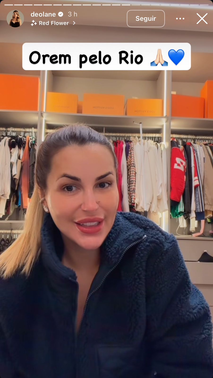 Em seus stories do Instagram, publicados nesta quarta-feira (29), a advogada lamentou a situação caótica da capital fluminense e pediu orações aos seus seguidores em prol da população do estado. “É inacreditável o que está acontecendo no Rio. A palavra que me vem à mente é somente essa. O que podemos fazer com nossa influência é vir aqui questionar as autoridades e orar pelo estado do Rio de Janeiro”, desabafou.