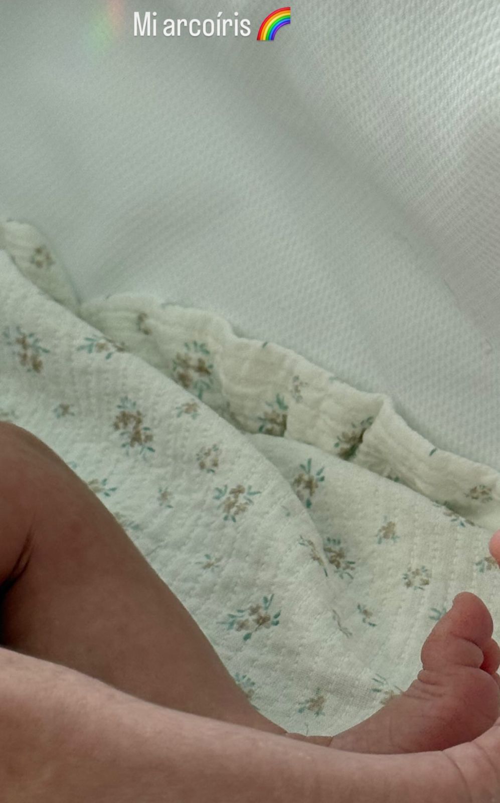 Em seu perfil do Instagram, a modelo espanhola compartilhou um registro em que aparecem apenas as perninhas do filho. "Meu arco-íris", escreveu na legenda.