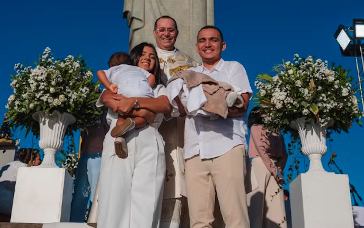 João Gomes e Ary Mirelle renovam votos e celebram batizado dos filhos no Cristo Redentor