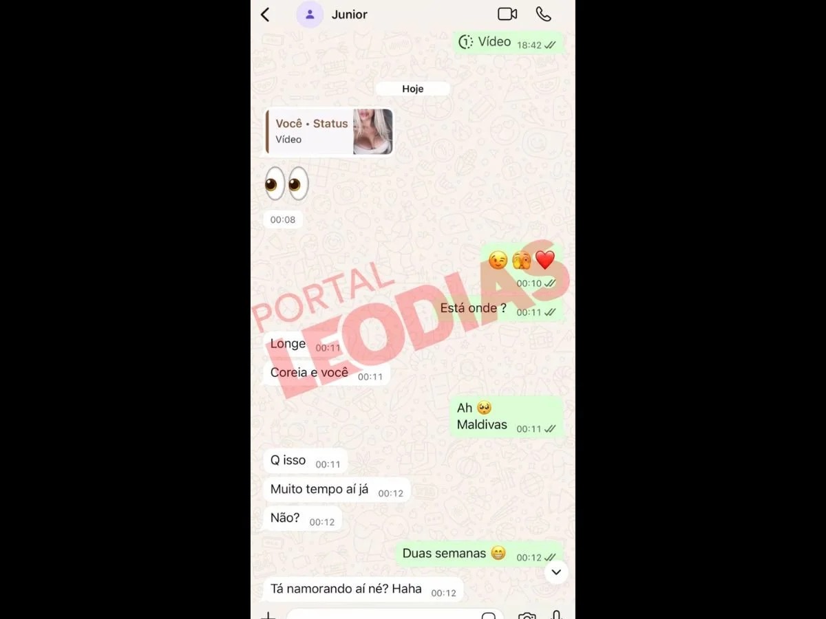 Em uma das conversas divulgadas, Vini Jr. teria respondido a um vídeo publicado por Day com um emoji de olhos. Ao ser questionado sobre onde estava, o atleta respondeu: “Longe. Coreia e você?”. A modelo informou que estava nas Maldivas, e ele respondeu em tom descontraído: “Tá namorando aí, né? Hahaha”.