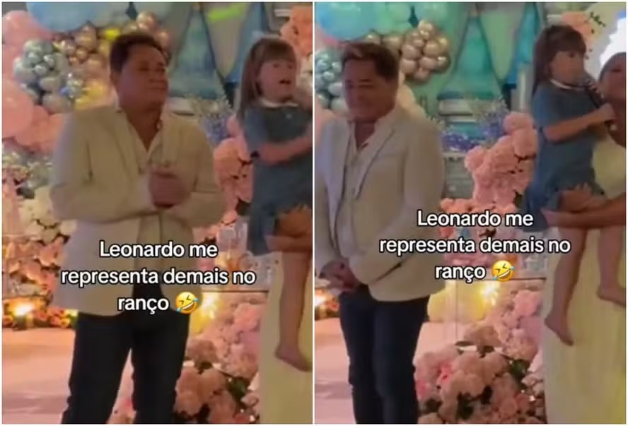 Postura de Leonardo durante "parabéns" de Maria Flor viraliza e gera reações: "Não consegue disfarçar"