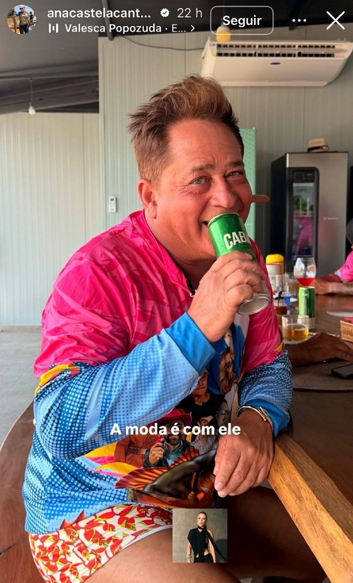Nesta terça-feira (30), Ana Castela usou suas redes sociais para tirar sarro de Leonardo após tirar uma foto do cantor. Em um dos posts feitos pela cantora, ela brincou com o pai de Zé Felipe ao colocar a foto de sua esposa, Poliana, em suas partes íntimas enquanto tomava uma cerveja de sunga.