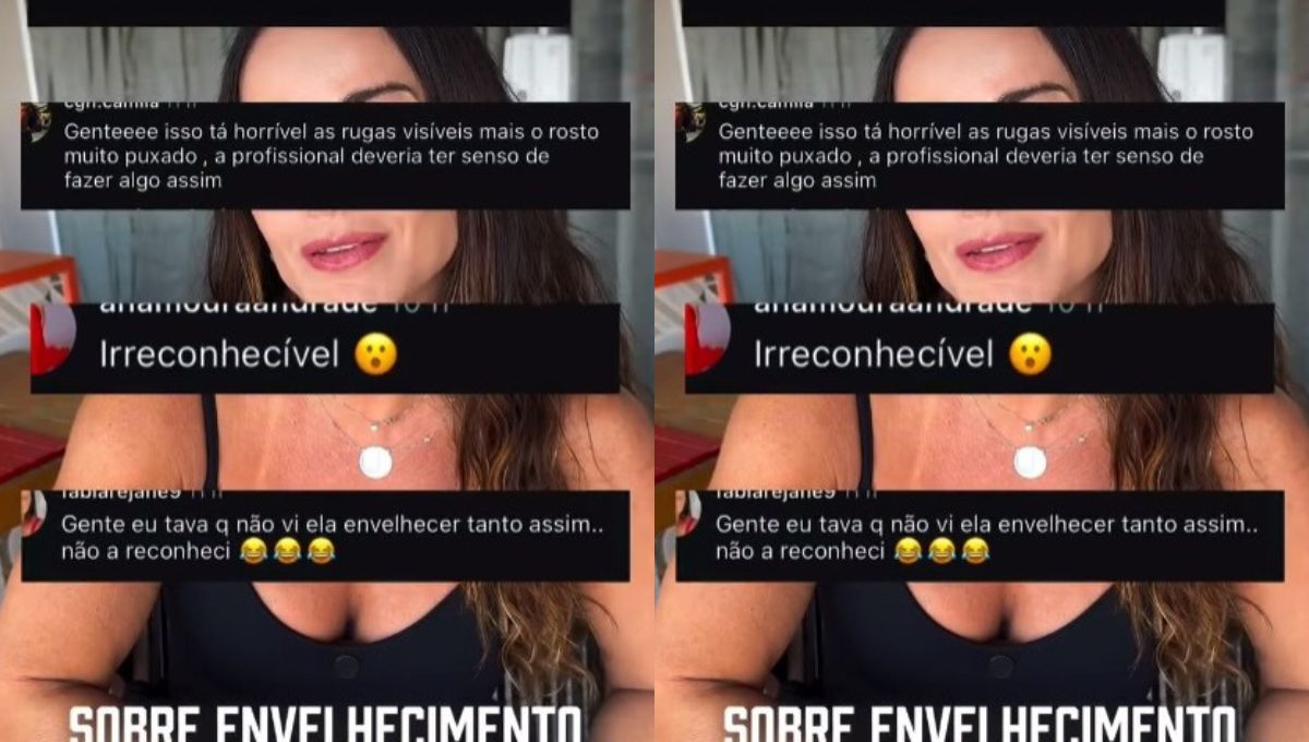 Na manhã desta sexta-feira (3), Viviane Araujo rebateu as críticas relacionadas ao seu envelhecimento nas redes sociais. Em um vídeo postado na quinta-feira (2), surgiram comentários como: "Envelhecer é normal, mas se repuxar desse jeito dá agonia de ver" e "Como ela está acabada, coitada, e é nova ainda".